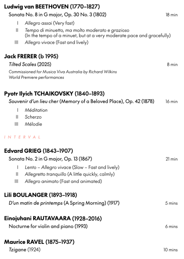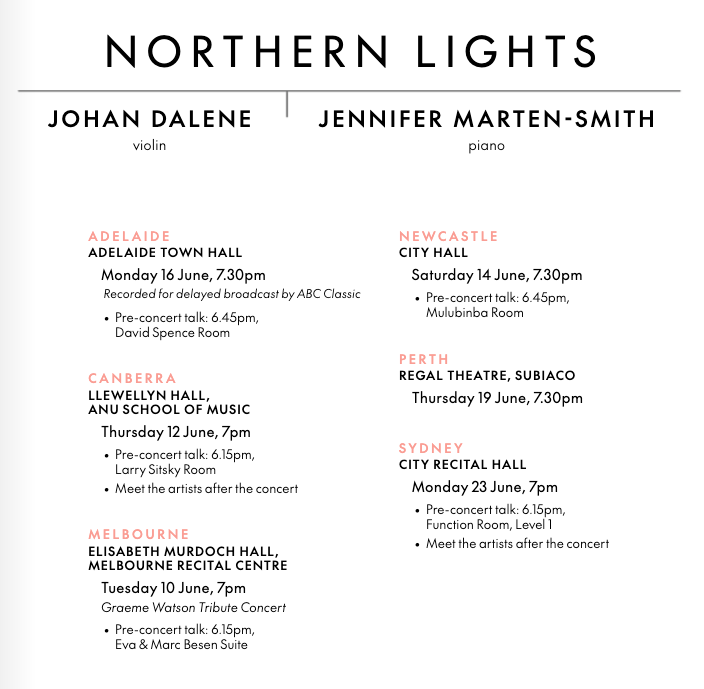 Commissioned by Musica Viva Australia for violinist Johan Dalene